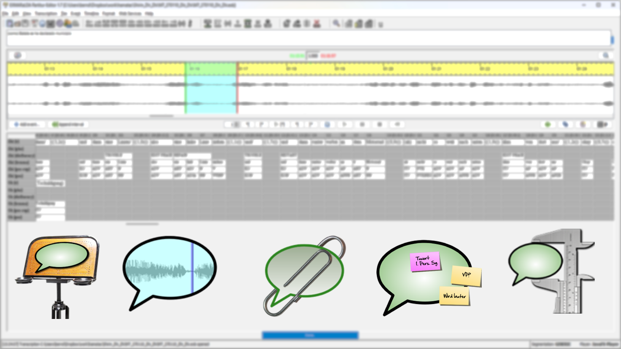 LinguisticBits can offer your project reliable and competent support for the EXMARaLDA tools. We offer EXMARaLDA support licences and on-site or online training courses for EXMARaLDA.